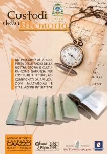 “Custodi della Memoria”, introduce nella progettazione e nelle nuove frontiere della valorizzazione dei beni culturali anche con l’ausilio di applicazioni multimediali e istallazioni interattive studiate soprattutto a scopo didattico e divulgativo per le nuove generazioni, nella convinzione che la scoperta delle radici della propria storia e cultura è garanzia per costruire il futuro.